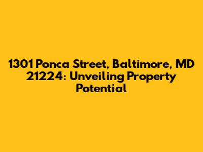 Hey everyone! Let's dive into the details of 1301 Ponca Street, Baltimore, MD 21224. This isn't just a random address; it's a potential investment, a future home, or a property waiting for its next chapter. We're going to explore what makes this address tick, covering everything from its location in Baltimore, Maryland, to the possible opportunities that await. We'll look at the housing market dynamics, potential for renovation, and things you should consider if you're thinking about buying, selling, or investing. So, buckle up; we're about to embark on a journey through the possibilities of 1301 Ponca Street!