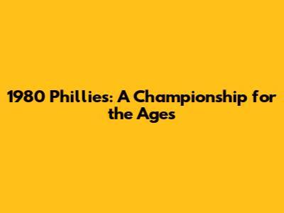 The Legacy of the 1980 Phillies