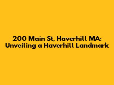 Hey guys! Let's dive into the details of 200 Main St, Haverhill MA 01830! This address isn't just a string of numbers and letters; it's a potential gateway to a home, a business, or a piece of Haverhill's vibrant community. Whether you're a local resident, a prospective buyer, or simply curious about this specific location, this guide will provide you with all the essential information. We'll explore what makes this address special, potential property types, and the overall vibe of the surrounding area. Get ready to uncover the secrets of 200 Main St, Haverhill MA! This is your go-to resource for understanding everything about this address.