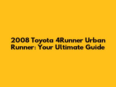 Unveiling the 2008 Toyota 4Runner Urban Runner: What Makes It Special?