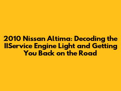 Hey guys, if you're cruising around in a 2010 Nissan Altima, you've probably encountered that dreaded IIService Engine Light at some point. It's like a little orange gremlin on your dashboard, flashing a message that something's not quite right under the hood. Don't sweat it, though – this article is your go-to guide for understanding the IIService Engine Light on your 2010 Nissan Altima, what it means, and what you can do about it. We'll break down the common causes, troubleshooting tips, and when it's time to call in the pros, ensuring you can keep your ride running smoothly. So, buckle up, and let's dive into the world of the 2010 Nissan Altima IIService Engine Light!