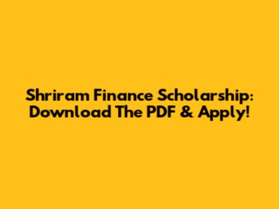 Shriram Finance Scholarship: Download The PDF & Apply!