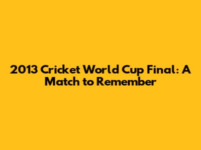 Hey sports fanatics, let's rewind the clock and dive into the thrilling 2013 Cricket World Cup Final! This match was more than just a game; it was a rollercoaster of emotions, nail-biting moments, and displays of incredible athleticism. If you're a cricket enthusiast, or even just a casual fan, this final is one for the history books. We'll be looking back at the key moments, the heroes of the day, and what made this particular World Cup final so special. So, grab your virtual popcorn, and let's get started on this recap of a classic!