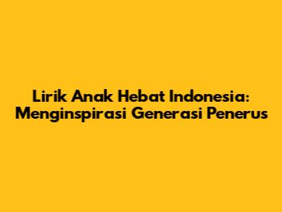Lirik Anak Hebat Indonesia: Menginspirasi Generasi Penerus