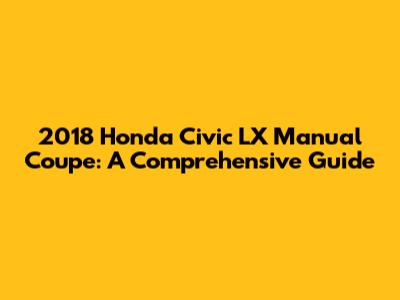 Hey car enthusiasts! Ever considered diving into the world of the 2018 Honda Civic LX Manual Coupe? This little beauty has a lot to offer, from its zippy performance to its surprisingly spacious interior. If you're pondering whether this car is the right fit for you, or if you're already a proud owner looking to learn more, you're in the right place. This guide will cover everything you need to know about the 2018 Honda Civic LX Manual Coupe, from its features and performance to common issues and how to keep it running smoothly. Get ready to explore what makes this car a popular choice among drivers who love a blend of affordability, efficiency, and driving engagement.
