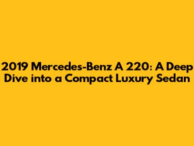 Hey there, car enthusiasts! Let's dive into the 2019 Mercedes-Benz A 220, a compact luxury sedan that made quite a splash when it hit the market. This car wasn't just another contender; it was a statement. Mercedes-Benz packed a lot of tech, style, and performance into a smaller package, making it a hit for those wanting the luxury experience without the hefty price tag of its larger siblings. In this review, we'll cover everything from its design and features to its driving dynamics and overall value proposition. So, buckle up, because we're about to take a detailed look at what makes the A 220 tick.