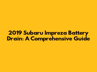 Hey guys! So, you're here because your 2019 Subaru Impreza is giving you some grief with its battery, huh? Dealing with a battery drain is a real pain, leaving you stranded and frustrated. But don't worry, we're going to dive deep into the common causes of this issue in your Impreza, and more importantly, how to fix it. This isn't just a quick fix guide; it's a deep dive to help you understand what's going on and how to get your car back on the road reliably. We'll cover everything from simple fixes to more complex diagnostics, ensuring you have the knowledge to tackle the problem head-on. Let's get started, shall we?