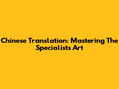 Chinese Translation: Mastering The Specialist's Art