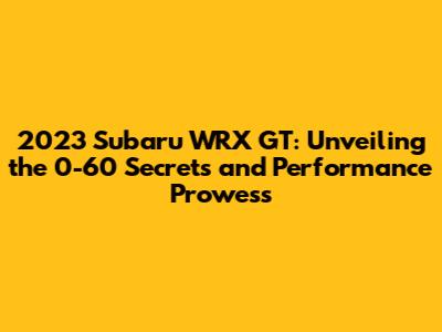 Decoding the 2023 Subaru WRX GT's 0-60 Time