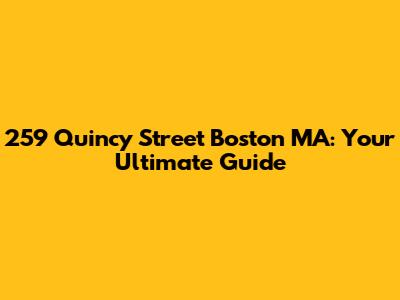 Hey guys! So, you're curious about 259 Quincy Street Boston MA, huh? You've landed in the right spot! Whether you're thinking about moving here, just curious about the neighborhood, or maybe you're a local looking for some new insights, we're going to dive deep into everything that makes this address, and the surrounding area, so special. We'll cover what it's like to live there, the vibe of the neighborhood, local attractions, and maybe even some hidden gems you didn't know about. So, buckle up, because we're about to explore 259 Quincy Street and its fantastic Boston locale in detail! This isn't just about a street address; it's about a community, a lifestyle, and the unique charm that Boston offers. We'll break down the essentials, making sure you get all the information you need, presented in a way that's easy to digest and, hopefully, pretty fun too. Let's get started on this journey to discover what makes 259 Quincy Street in Boston, Massachusetts, a place worth knowing about.