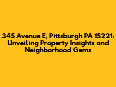 Hey there, property enthusiasts! Ever found yourself pondering the ins and outs of a specific address? Let's dive deep into the world of 345 Avenue E, Pittsburgh, PA 15221. We're not just looking at a street address here; we're exploring a potential home, an investment, and a slice of the vibrant Pittsburgh life. This article is your ultimate guide, covering everything from property details to the surrounding neighborhood's charm. Get ready to uncover valuable insights, learn about the area's history, and discover why this location might just be the perfect fit for you. We'll explore the essence of this address, providing a comprehensive overview that'll help you make informed decisions. Let's get started, shall we?