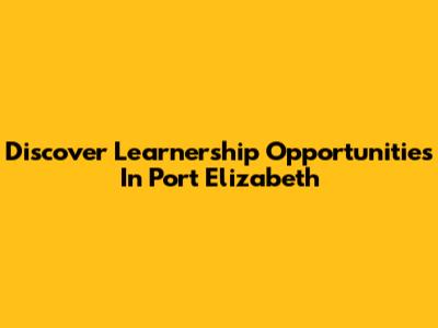 Discover Learnership Opportunities In Port Elizabeth