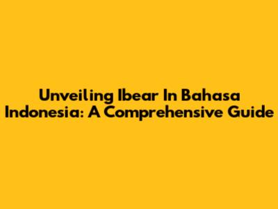 Unveiling 'Ibear' In Bahasa Indonesia: A Comprehensive Guide