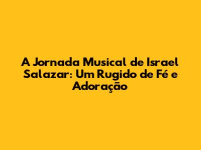 Em cada canção, em cada apresentação, em cada palavra, Israel Salazar transmite a sua fé e a sua paixão pela música. Sua jornada é uma testemunha de como a fé e a música podem se unir para criar algo verdadeiramente impactante. Que sua música continue a ecoar nos corações de todos que a ouvem, levando esperança, conforto e fortalecimento.