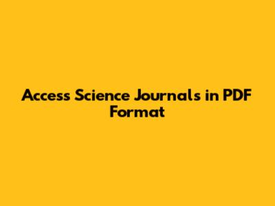Open Access: Free Science Journal PDFs for Everyone