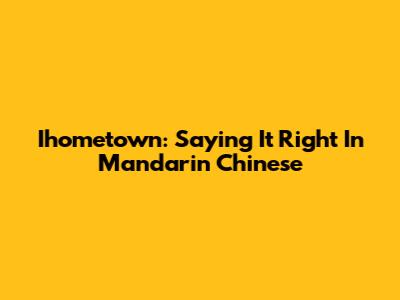 Ihometown: Saying It Right In Mandarin Chinese