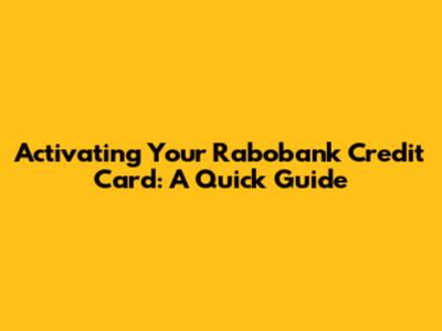 Methods to Activate Your Rabobank Credit Card