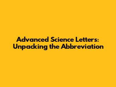 So, you've stumbled upon Advanced Science Letters and you're wondering, "What's the deal with its abbreviation?" Guys, it's a super common question, especially when you're navigating the sea of academic journals. You see these letters flying around, and sometimes it's hard to keep track. But don't sweat it! We're here to break down the abbreviation for Advanced Science Letters and give you the lowdown on why it matters.
