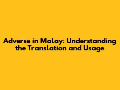 Understanding how to express the word "adverse" in Malay is super useful, whether you're traveling, learning the language, or just curious. This article breaks down the different ways to translate "adverse," how to use them correctly, and some examples to help you get the hang of it. Let's dive in and make sure you're all set to use the right words in the right situations!