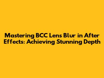 After Effects BCC Lens Blur: Achieve Stunning Depth