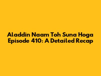 Overall, Episode 410 of Aladdin Naam Toh Suna Hoga was a thrilling and engaging installment that kept us hooked from beginning to end. The perfect blend of action, emotion, and intrigue made it a standout episode in the series. What did you guys think of the episode? Let me know in the comments below!
