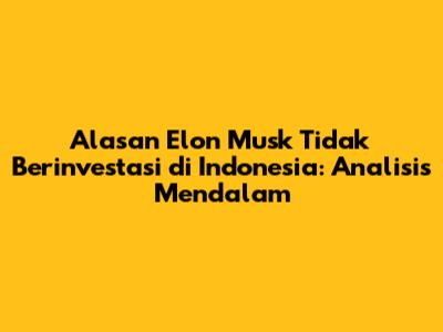 Elon Musk, sosok yang dikenal dengan inovasi dan keberaniannya dalam dunia teknologi, sering kali menjadi sorotan publik. Namun, meskipun memiliki rekam jejak investasi yang mengesankan di berbagai negara, termasuk Amerika Serikat, China, dan beberapa negara Eropa, pertanyaan besar yang sering muncul adalah mengapa Elon Musk belum berinvestasi secara signifikan di Indonesia? Artikel ini akan mengupas tuntas berbagai alasan potensial di balik keputusan tersebut, dengan mempertimbangkan faktor-faktor ekonomi, regulasi, infrastruktur, serta strategi bisnis yang mungkin menjadi pertimbangan utama Elon Musk.