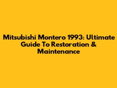 Mitsubishi Montero 1993: Ultimate Guide To Restoration & Maintenance