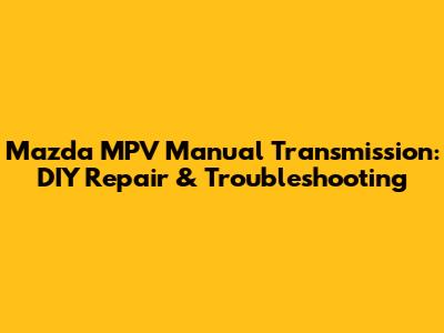 Mazda MPV Manual Transmission: DIY Repair & Troubleshooting