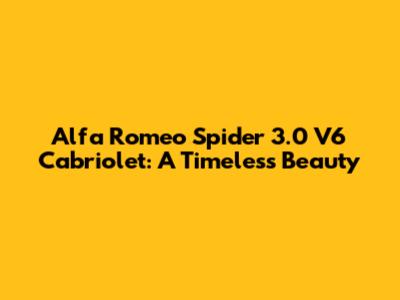 The Alfa Romeo Spider 3.0 V6 Cabriolet is a timeless classic that continues to captivate car enthusiasts around the world. Its stunning design, engaging performance, and rich history make it a truly special car. While owning one requires dedication and care, the rewards are well worth the effort. The Spider is more than just a car; it's an experience, a passion, and a symbol of Italian automotive excellence. So, if you're looking for a classic car that will turn heads and stir your soul, look no further than the Alfa Romeo Spider 3.0 V6 Cabriolet. It's a car that will never go out of style, a car that will always bring a smile to your face, and a car that will forever hold a special place in automotive history. Remember, it's not just a car; it's an Alfa Romeo. And that makes all the difference.