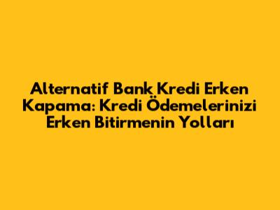 Alternatif Bank'ta Kredi Erken Kapama İşlemi Nasıl Yapılır?