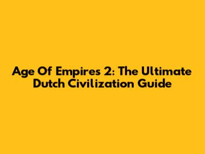Age Of Empires 2: The Ultimate Dutch Civilization Guide