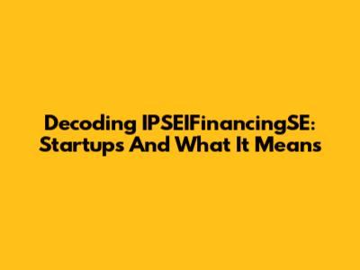 Decoding IPSEIFinancingSE: Startups And What It Means