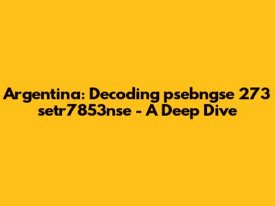 Let's dive into the intriguing world of "psebngse 273 setr7853nse argentina." Okay, guys, I know it looks like a jumbled mess of characters, but bear with me! When faced with such an alphanumeric string, especially one associated with a specific country like Argentina, our first step is to try and figure out what it could represent. It might be a product code, a serial number, a reference to a specific regulation, or even an internal identifier used by a particular organization. The possibilities are endless, but the key is to start investigating.