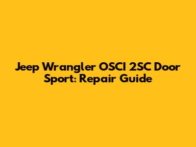 Jeep Wrangler OSCI 2SC Door Sport: Repair Guide