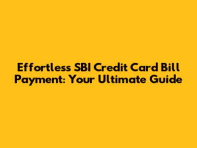Effortless SBI Credit Card Bill Payment: Your Ultimate Guide