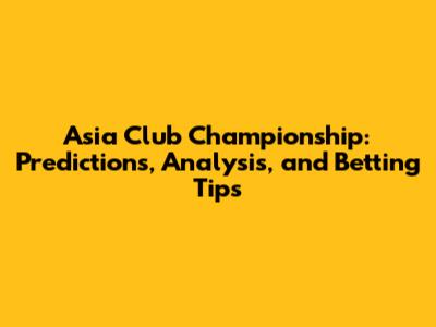 Hey sports fanatics! Are you ready for the Asia Club Championship? It's a tournament where the best club teams across Asia battle it out for glory, bragging rights, and a shot at even bigger competitions. We're diving deep into the upcoming championship, bringing you the latest predictions, insightful analysis, and some handy betting tips to get you in the game. Whether you're a seasoned bettor or just a casual fan, this guide is your go-to resource for everything you need to know about the Asia Club Championship. Get ready to explore the teams, analyze their strengths and weaknesses, and uncover the potential underdogs that could surprise everyone. Let's gear up and get started, shall we?