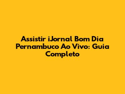 Onde Assistir iJornal Bom Dia Pernambuco Ao Vivo?