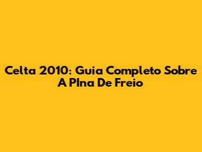 Celta 2010: Guia Completo Sobre A PIna De Freio