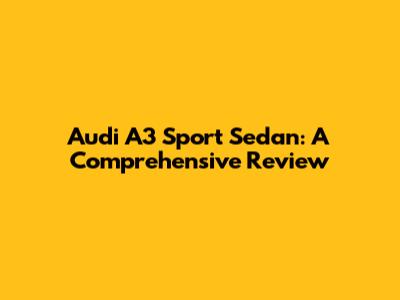 Hey guys! Today, we’re diving deep into the Audi A3 Sport Sedan, a car that perfectly blends luxury, performance, and practicality. If you're considering a compact sedan that doesn’t compromise on premium features, the A3 Sport Sedan should definitely be on your radar. Let’s get started and explore everything this amazing car has to offer!