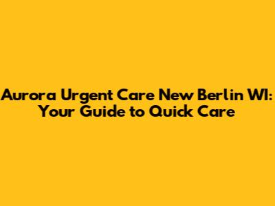 What is Aurora Urgent Care in New Berlin? Your Quick Guide