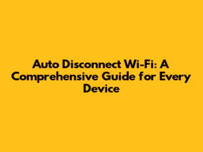 Auto Disconnect Wi-Fi: A Comprehensive Guide for Every Device