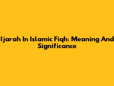 Ijarah In Islamic Fiqh: Meaning And Significance