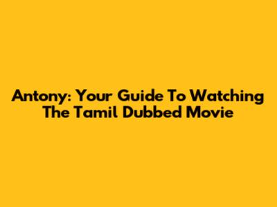 Antony: Your Guide To Watching The Tamil Dubbed Movie