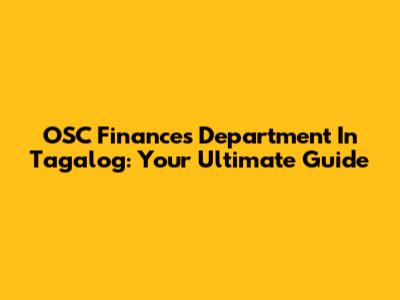 OSC Finances Department In Tagalog: Your Ultimate Guide