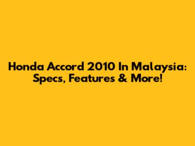 Honda Accord 2010 In Malaysia: Specs, Features & More!