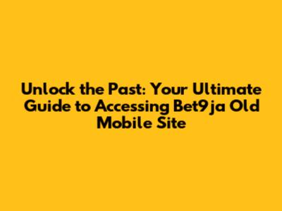 Unlock the Past: Your Ultimate Guide to Accessing Bet9ja Old Mobile Site