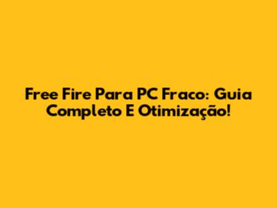 Free Fire Para PC Fraco: Guia Completo E Otimização!