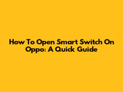 How To Open Smart Switch On Oppo: A Quick Guide