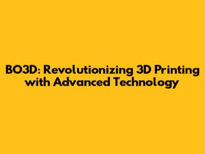 BO3D: Revolutionizing 3D Printing With Advanced Technology