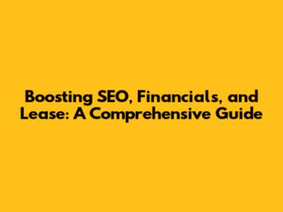 Hey everyone, let's dive into some seriously important stuff: SEO, Financials, and Leases. Whether you're a seasoned business pro or just starting out, understanding these three pillars is crucial for success. In this article, we'll break down each element, offering practical tips and strategies to help you navigate these areas with confidence. So, grab a coffee, settle in, and let's get started!
